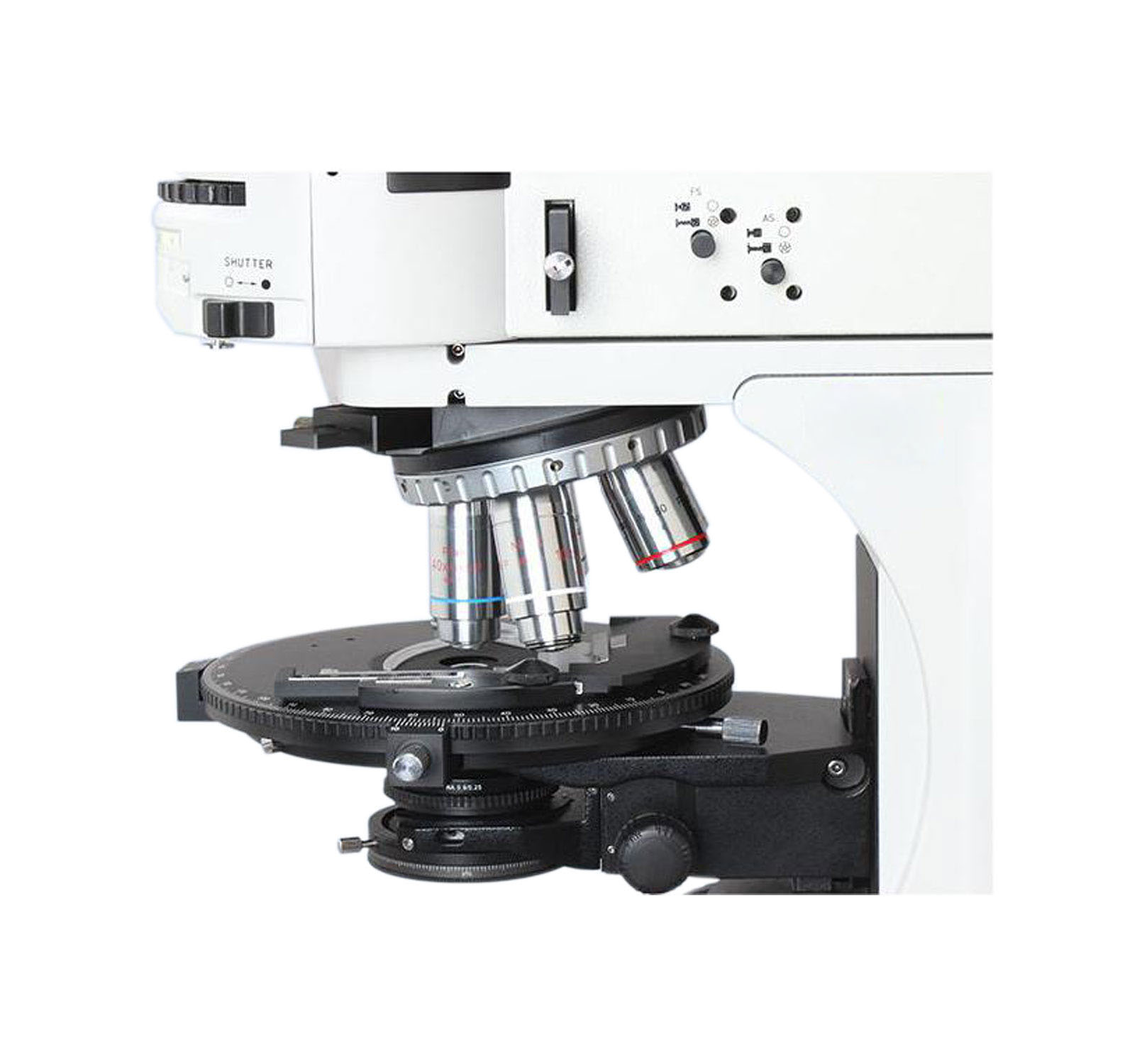 RXLr-5NX Pol Professional Research polarizing microscope for geology, petroleum, chemicals, polymer, LED field. Produces high quality and contrast image with special strain free objectivises. Designed for single polarization, orthogonal polarization and conoscopic observations with constant focus mechanism trinocular head Brightness adjustable transmitted light and reflected light. Stage with 45°click, attachable mechanical stage with large moving range, high efficiency without any interferencewhile turning objectives.