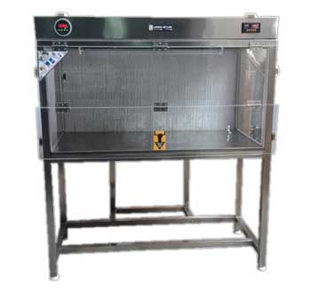 Microprocessor based control touch panel for Blower, LED light & UV light with LED back light display. (UV light with Timer). Motorized front door of toughened glass. |