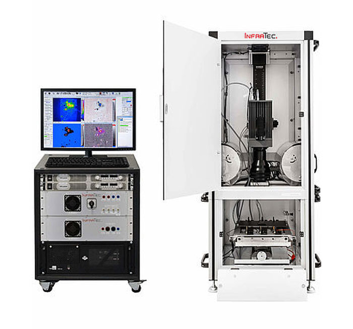 The construction of large-area photoelectric solar power plants requires the application of high-performance solar cells and modules of excellent quality. InfraTec's thermographic testing system PV-LIT allows testing of solar cells for various types of defects even in the manufacturing process. It is also possible to carry out a continuous quality control for serial productions in order to sort defective cells out at an early stage and, following, avoiding additional costs. According to the to-be-tested types of defects, PV-LIT provides the use of contact testing (DLIT) as well as non-contact testing (ILIT).